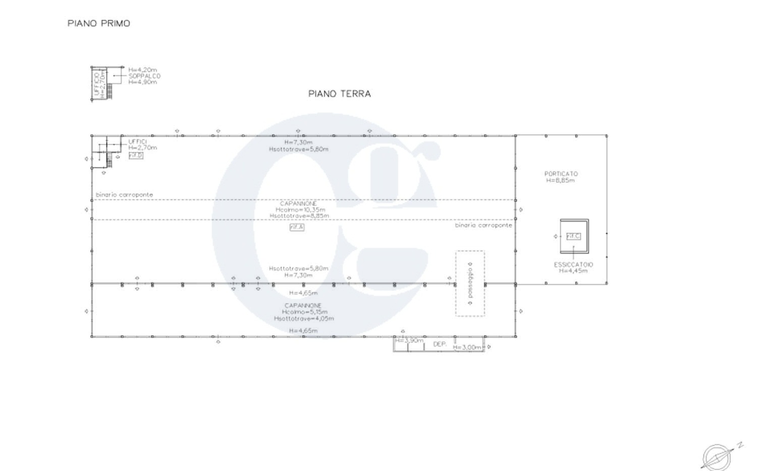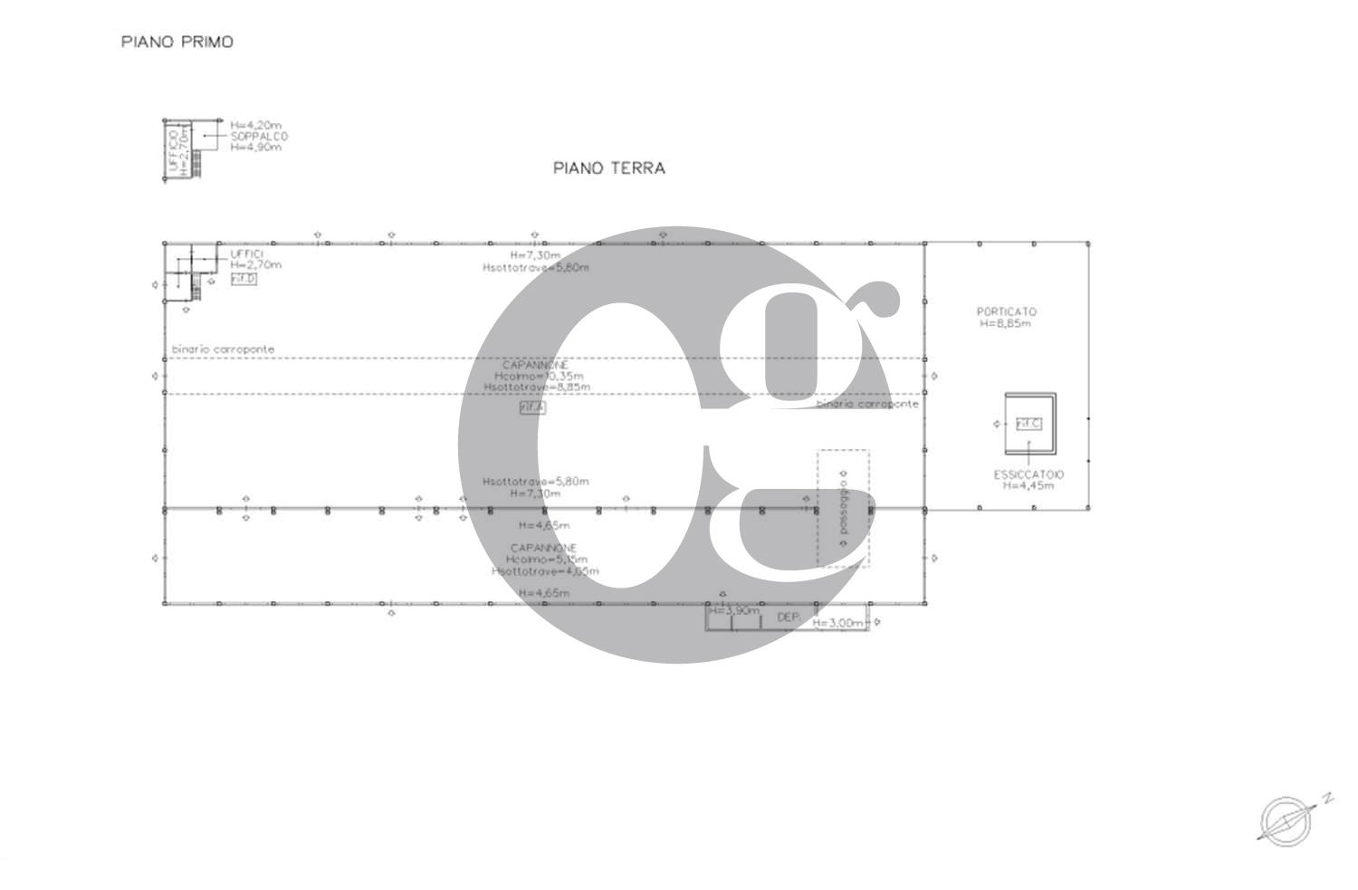 Il capannone, inserito su un lotto industriale di c.a 19.000 mq., è da rivedere al suo interno.