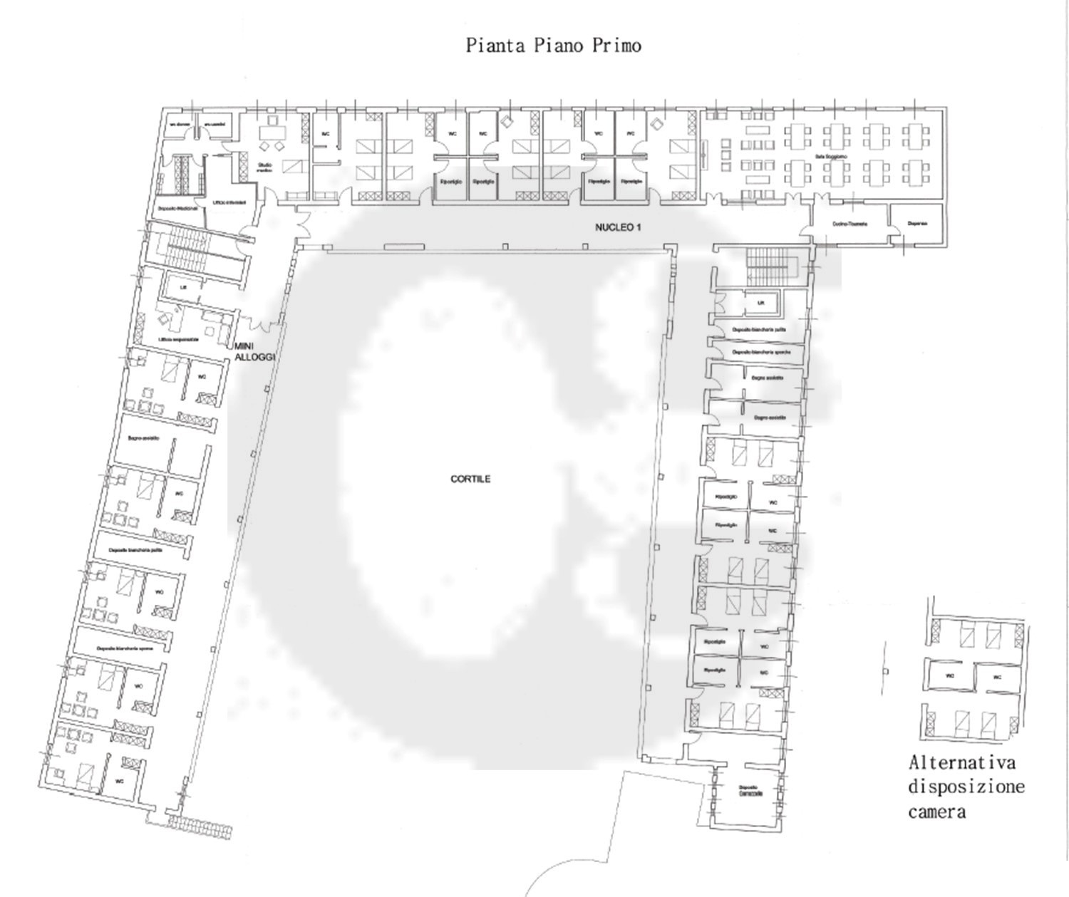 Il complesso immobiliare si sviluppa su due livelli con una SUPERFICIE COIPERTA di 4.000 mq., già studiato per lo sviluppo di una RSA, e un annesso PARCO ADULTO di circa 8.000 mq.